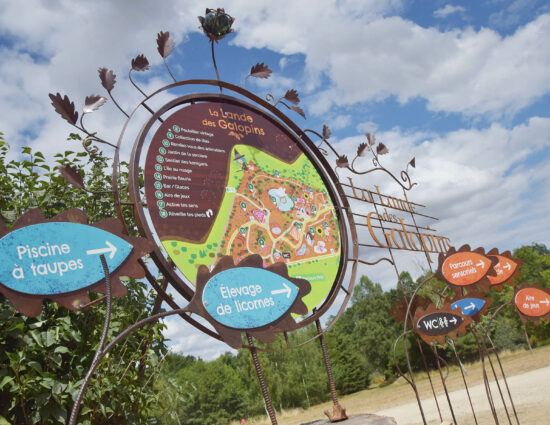 Un peu plus loin, trône depuis peu le plan de la zone appelée désormais Lande des Galopins. Elle délimite les départs des parcours sensoriels, le sentier des korrigans, le jardin de la sorcière… De quoi faire travailler l’imagination des petits et des grands ! Et pour couronner le tout, de drôles de flèches indiquent une piscine à taupes et un élevage de licornes ! Alors, est-ce que ces animaux mythiques sont visibles ici ? C’est la question que posent depuis plusieurs jours de nombreux enfants à leurs parents ! Ceux-ci n’ayant pas toujours la réponse…